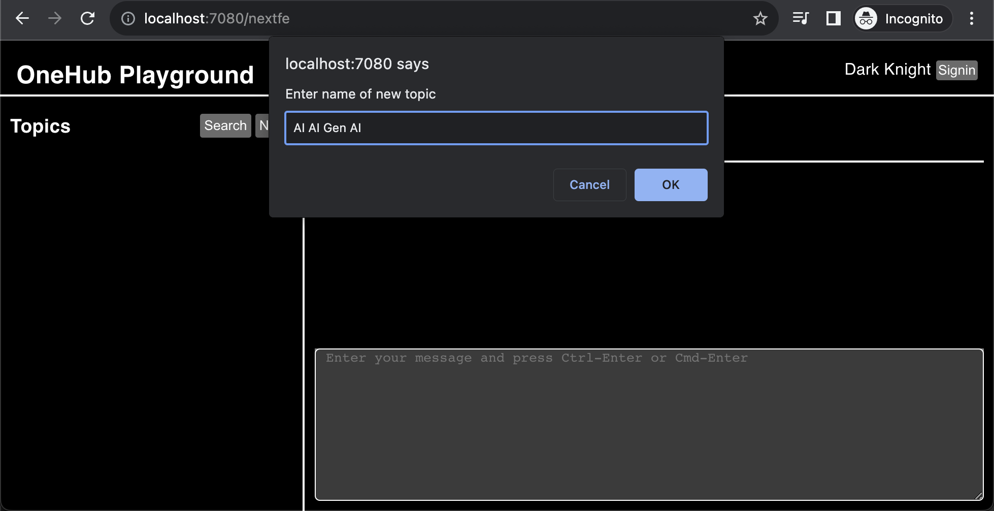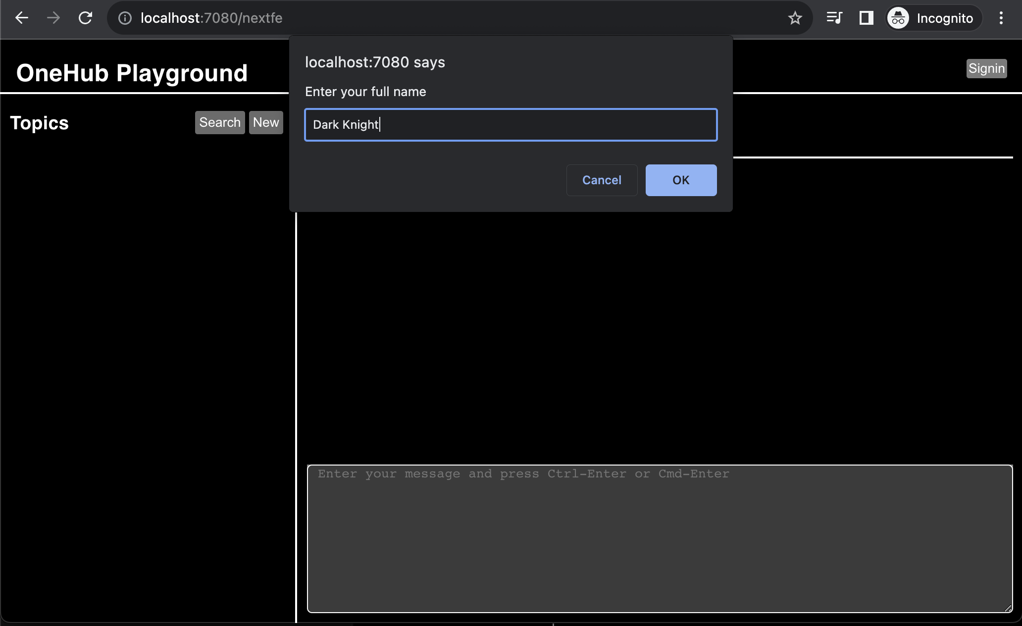 In this part we created a simple web app (for reading/writing topics and messages) for our OneHub chat service.